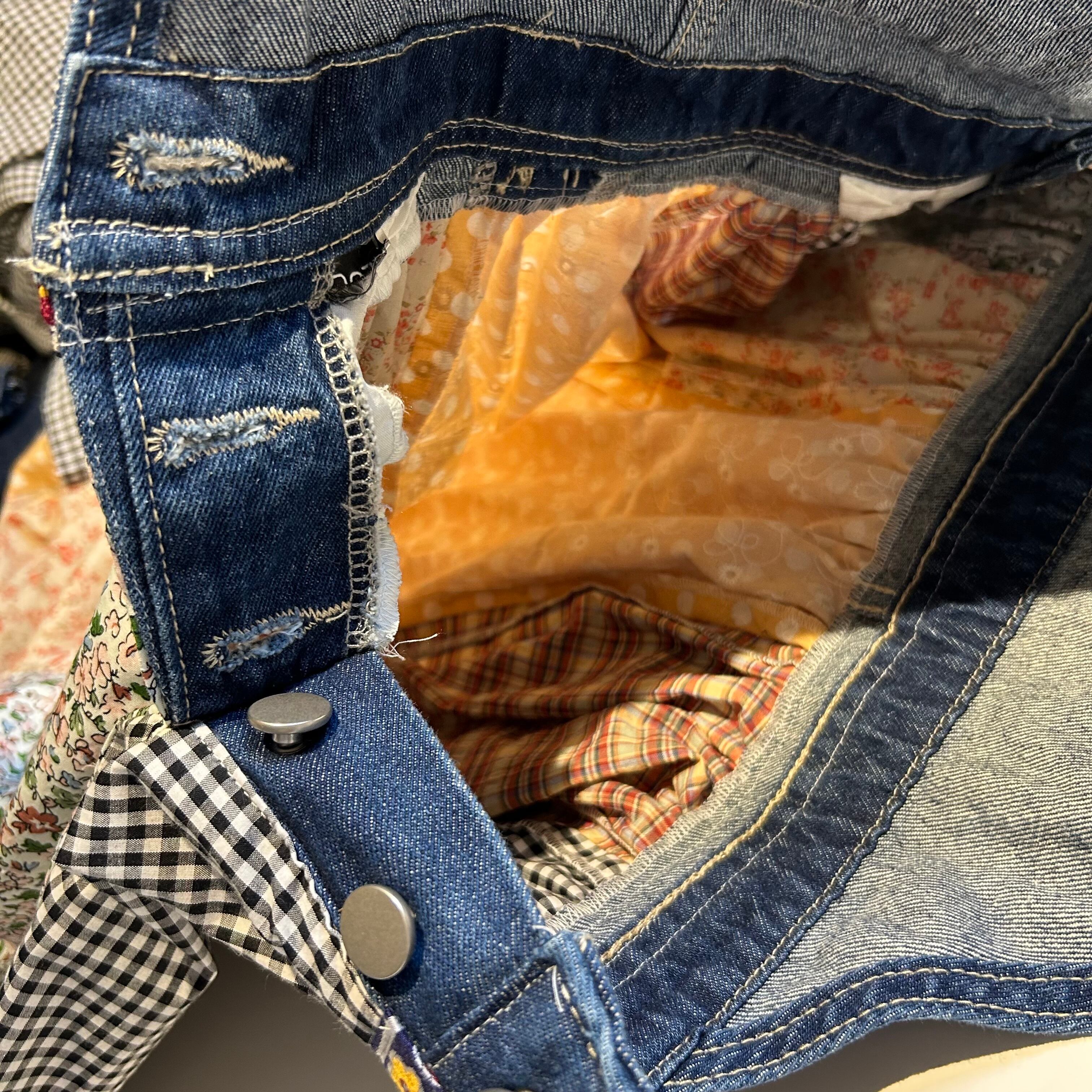 古着のオーバーオールを仕入れ後に洗濯してから製作しています。