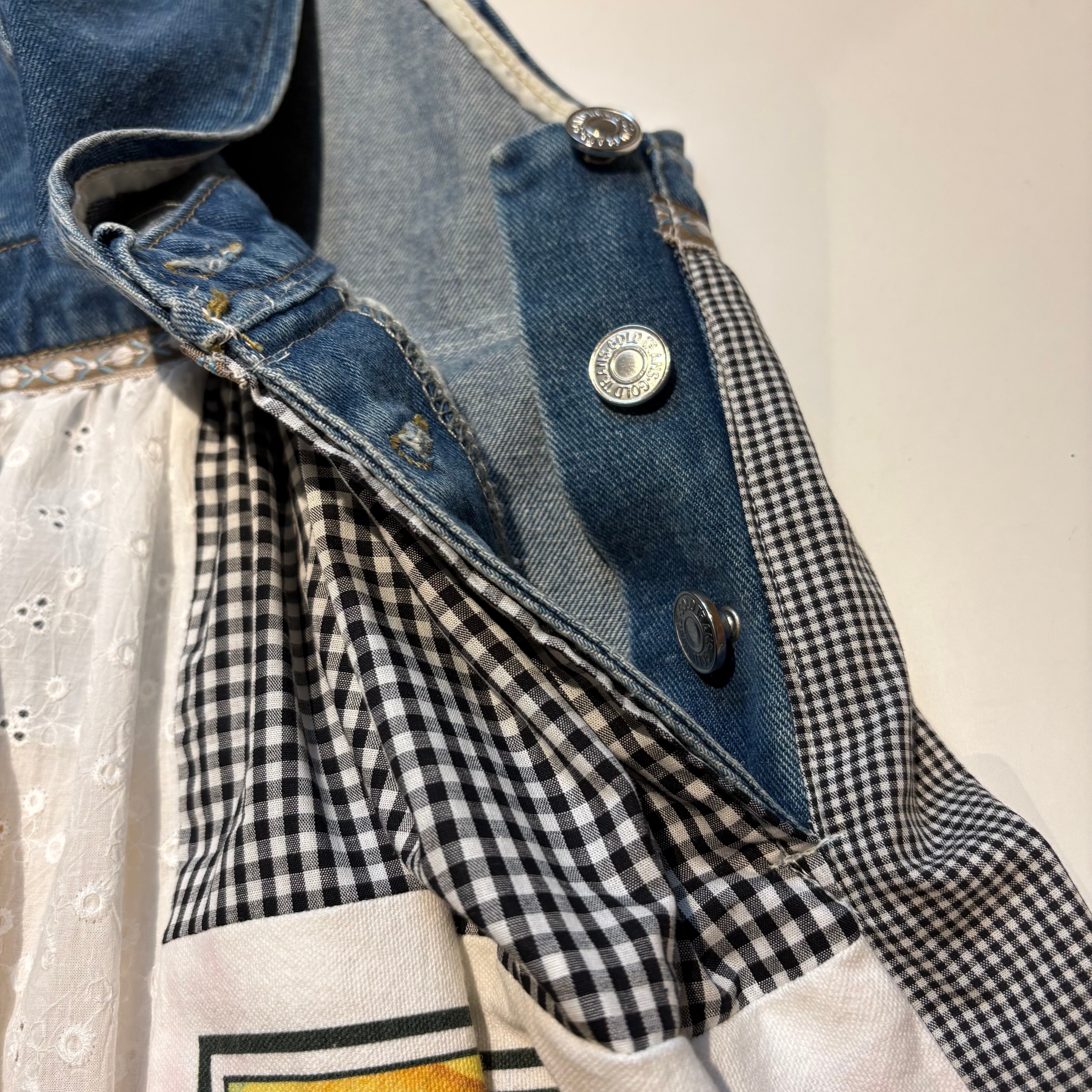 古着のオーバーオールを仕入れ後に洗濯してから製作しています。