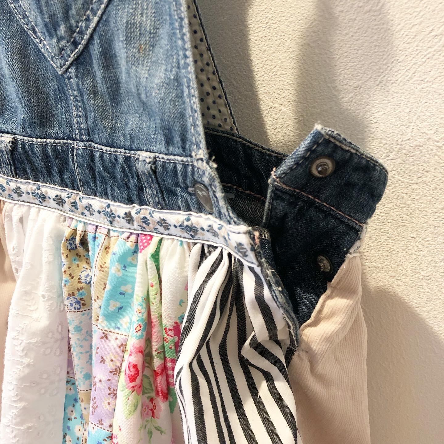 古着のオーバーオールを仕入れ後に洗濯してから製作しています。