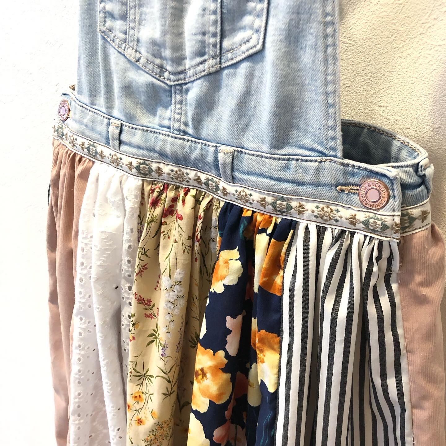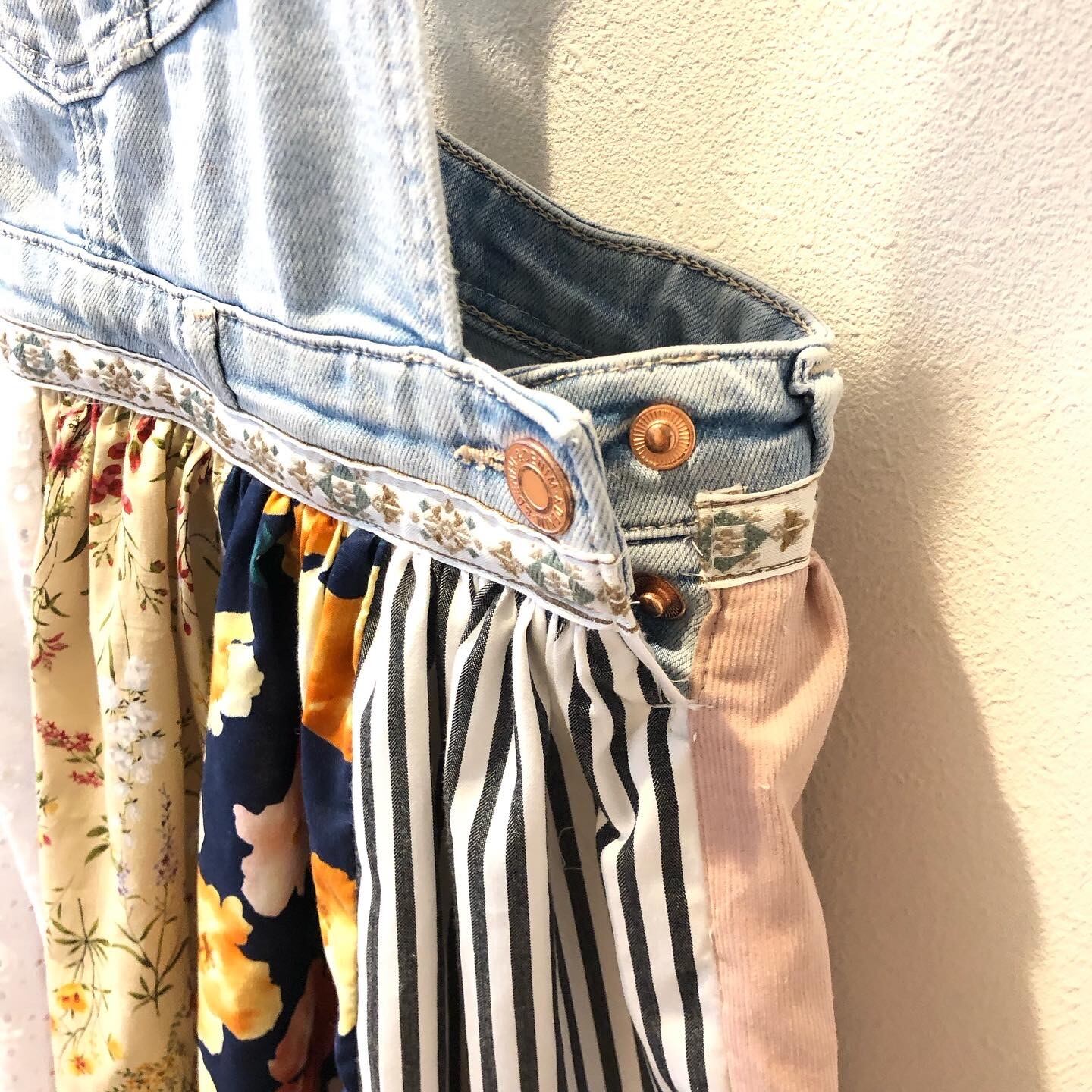 古着のオーバーオールを仕入れ後に洗濯してから製作しています。