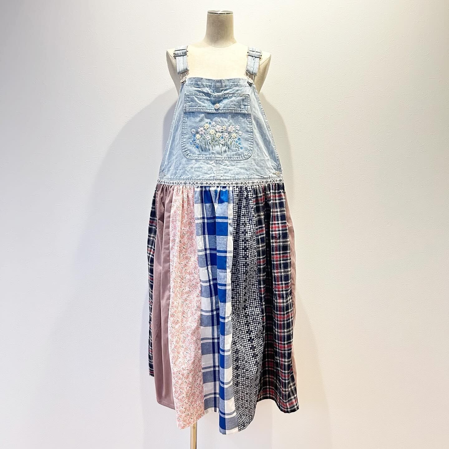 古着のオーバーオールを仕入れ後に洗濯してから製作しています。