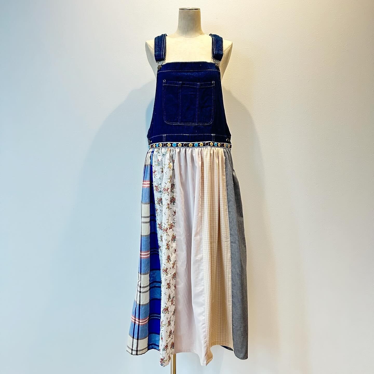 古着のオーバーオールを仕入れ後に洗濯してから製作しています。