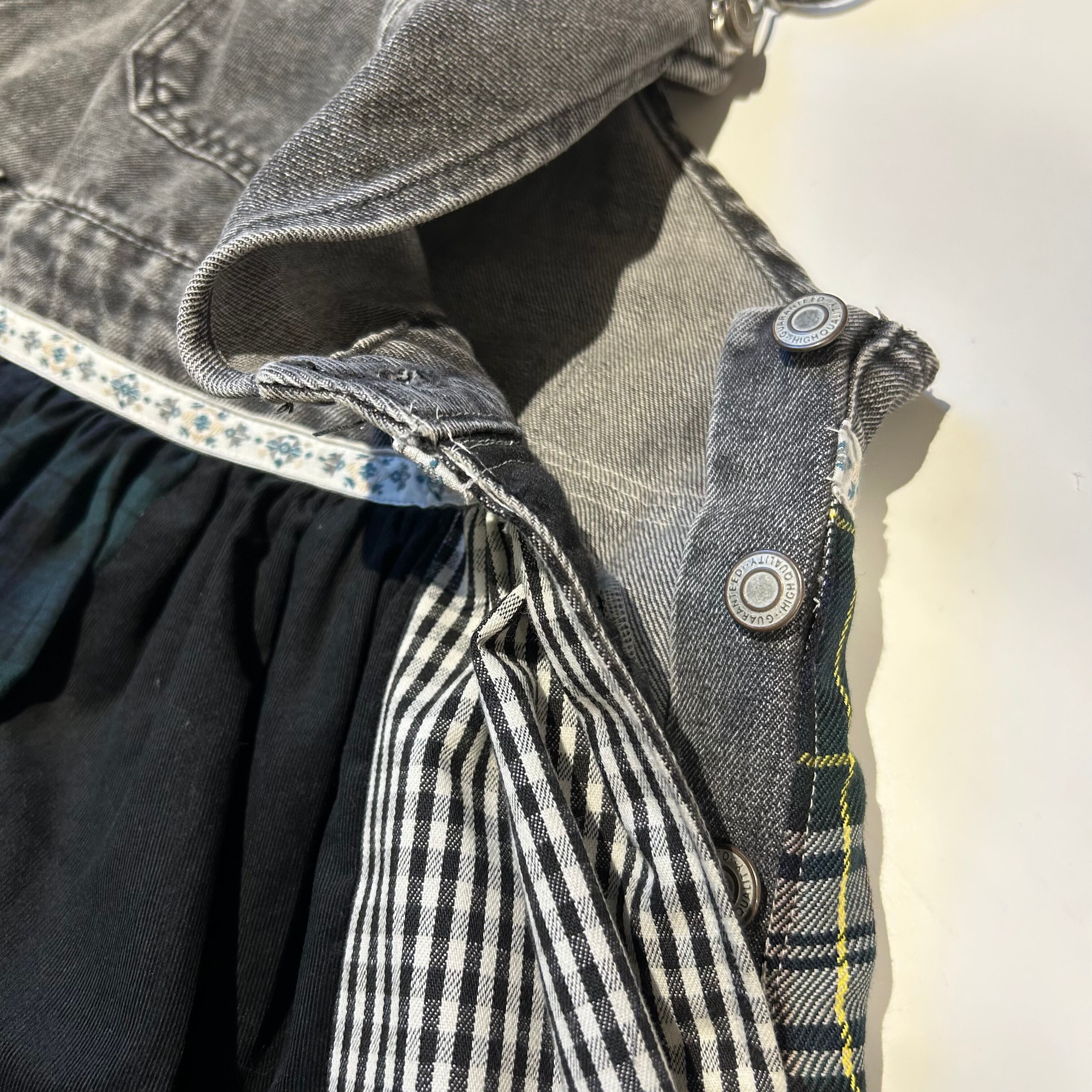 古着のオーバーオールを仕入れ後に洗濯してから製作しています。